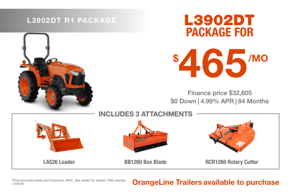 0% APR available or save up to $1,000 on your new Kubota TLB Series!